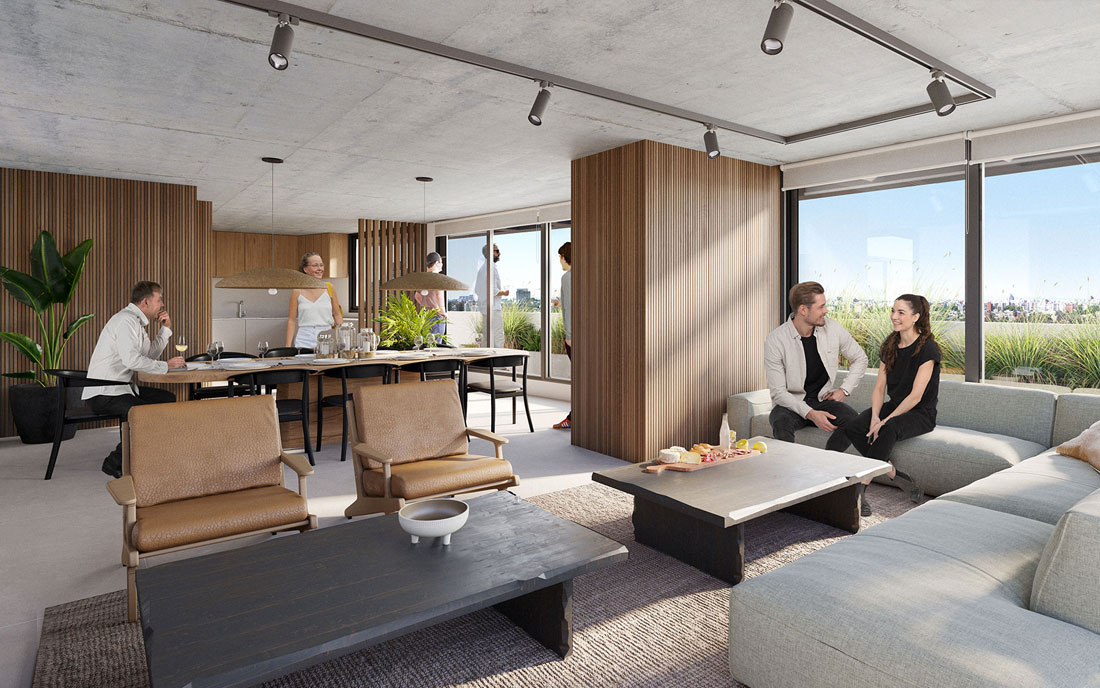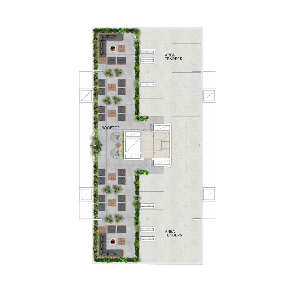 TÉRMINOS LEGALES: La presente información es preliminar, orientativa y no vinculante, quedando sujeta a las modificaciones que por causas técnicas, naturales o impuestas por las autoridades pertinentes pudieran ocurrir al ajustar el proyecto definitivo. Las imágenes pueden presentar diferencias con la versión final real y las medidas definitivas surgirán del plano a realizar por el Ing. Agrimensor. La Dirección de Obra se reserva el derecho, en forma unilateral y en cualquier momento, a modificar las terminaciones que figuran en la ilustraciones, sin ir en detrimento del diseño ni de la calidad. El mobiliario y equipamiento son de carácter ilustrativo y no forman parte de las unidades. Antes de adquirir unidades, solicite el vendedor/promotor la información técnica necesaria a efectos de confirmar los datos obtenidos y poder tomar una decisión informada. Las áreas están consideradas según los criterios de APPCU (Asociación de Promotores Privados de la Construcción de Uruguay).